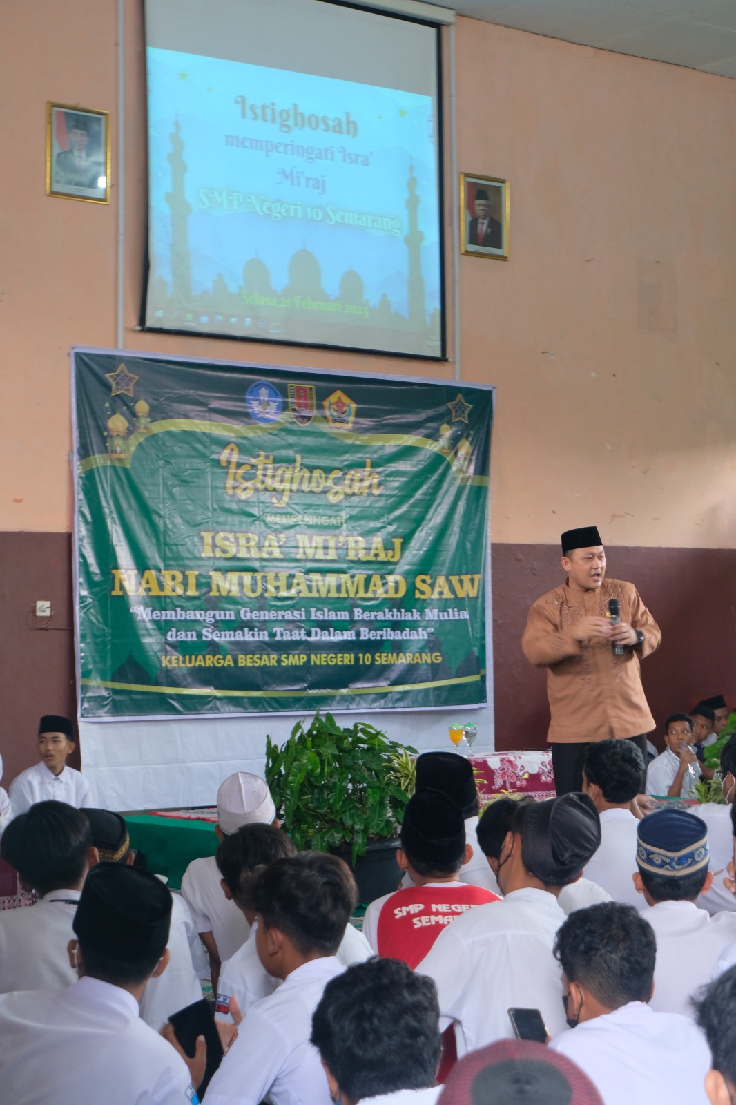 Semarang – Selasa (21/2/2023), SMPN 10 Semarang menggelar Peringatan Isra Mi’raj di Aula sekolah.Kagiatan ini diikuti oleh guru, pegawai, dan peserta didik muslim SMPN 10 Semarang.